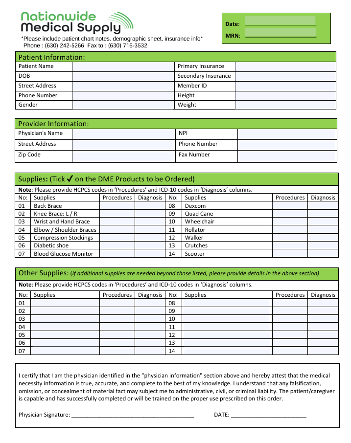 Download and complete our DME Referral Form.Fax the completed form, along with the patient’s face sheet and recent chart notes, to: (630) 716-3532